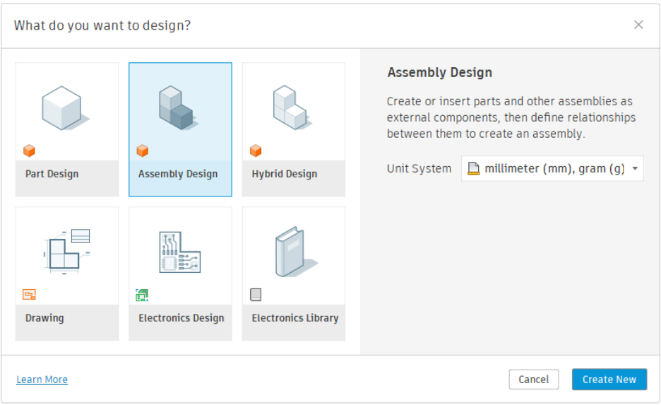 - Use the traditional design method, where both parts and assemblies are created in a single design file.