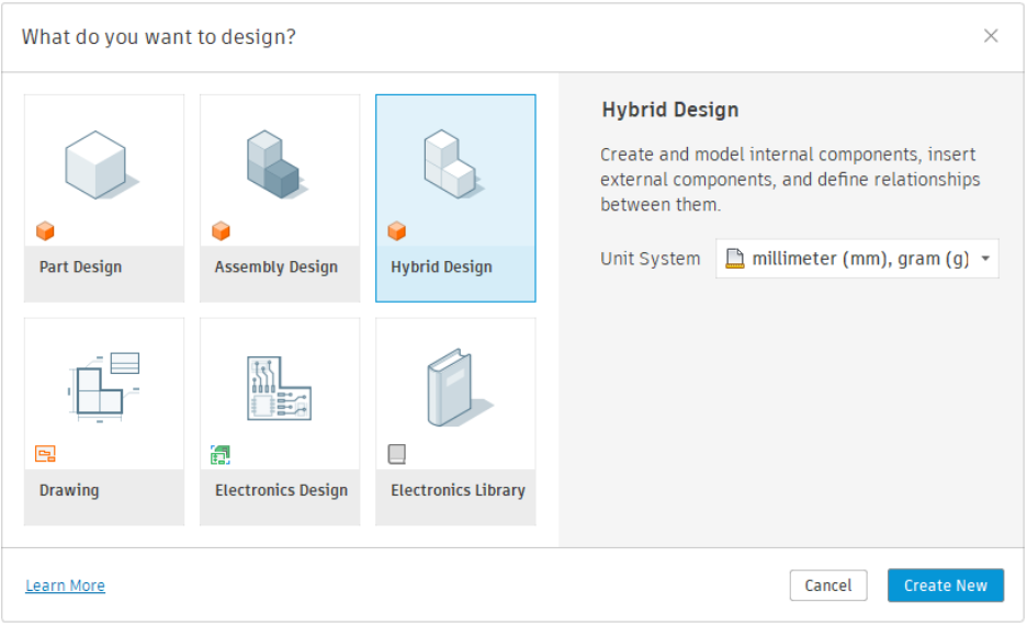 The hybrid environment is the standard and familiar environment for users – in it, you can create, insert, or manage geometry and components. This is the previous Autodesk Fusion behavior that existed until now. This means users can use all functions, from Skeleton Design to creating and exporting specifications.
